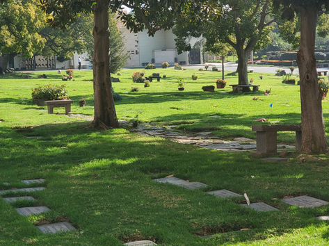 The Grave is located in a shady corner of the historic central section of the graveyard in front of the mortuary. Notable famous neighbors within a fifty-foot radius of the grave include movie mogul Daryl F. Zanuck, Natalie Wood, Cornell Wilde, John Cassavetes, Don Knotts, Roy Orbison and Armand Hammer. Other notables interred in the rest of the historic portion of the Cemetery include:
